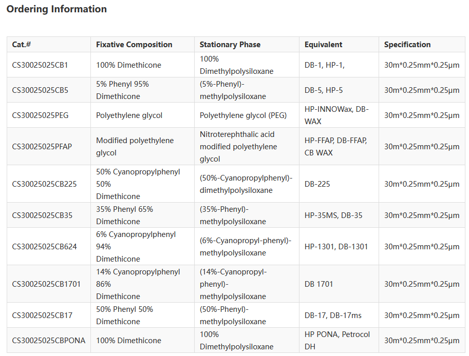 CommaSil®Gas Chromatography Columns, performing test strictly for each GC column, have the advantages of high column efficiency, stable product performance, and high sensitivity. CommaSil®GC Columns are widely used in petrochemical, environmental protection, medicine, food, health and other fields.